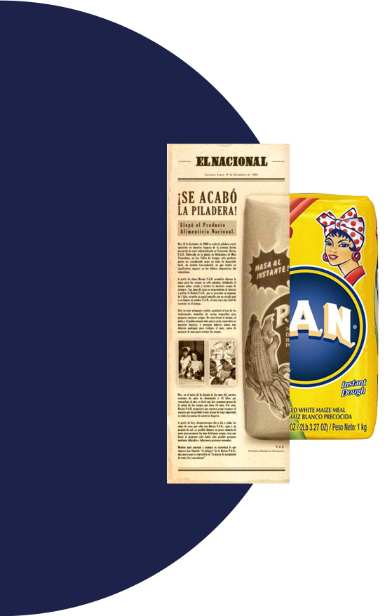 The P.A.N. brand was born in 1960 in Venezuela thanks to the creation of pre-cooked corn meal that restored the traditional way of preparing arepas. Today it is a global brand with a growing portfolio that includes corn meal, mixes, frozen foods, sauces and spreads, and other foods.